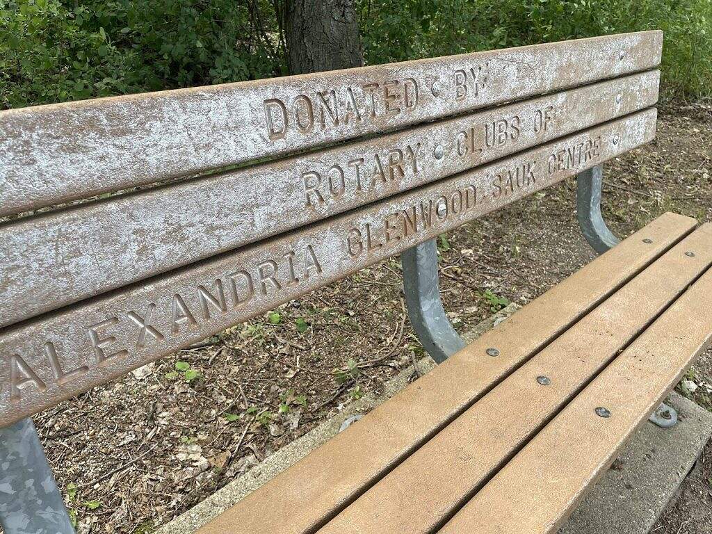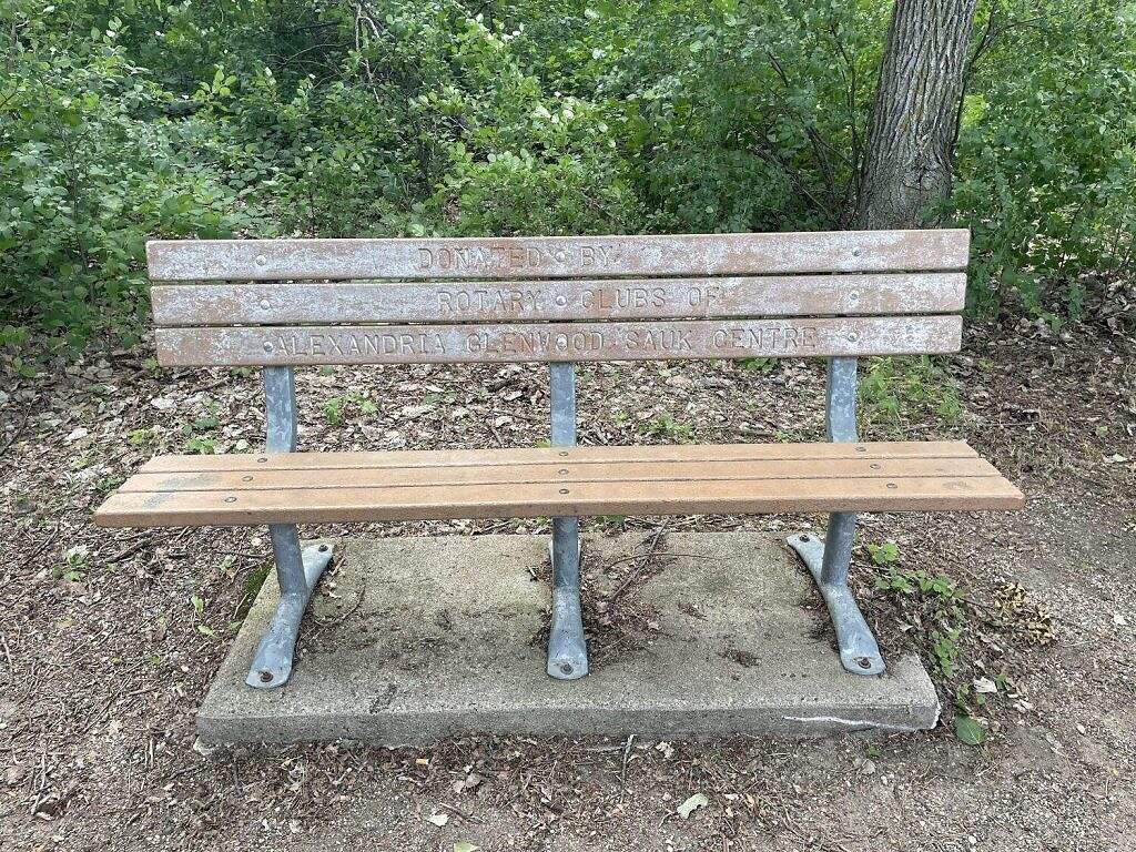 The Rotary Clubs of Alexandria, Glenwood, and Sauk Centre worked with the city park department to add a community bench along the walking path by Lake Agnes.