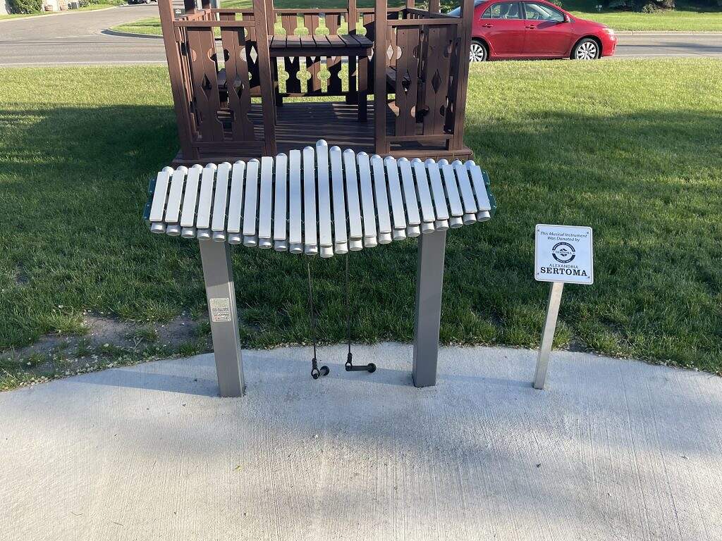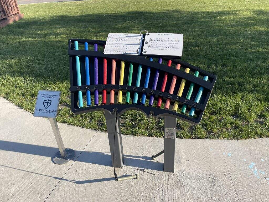 Built to withstand the elements, these outdoors musical instruments make for a unique playground for kids to create some fun notes. The club also added a bench at the end of the pad in memory of long-time Rotarian, Jim Bill.